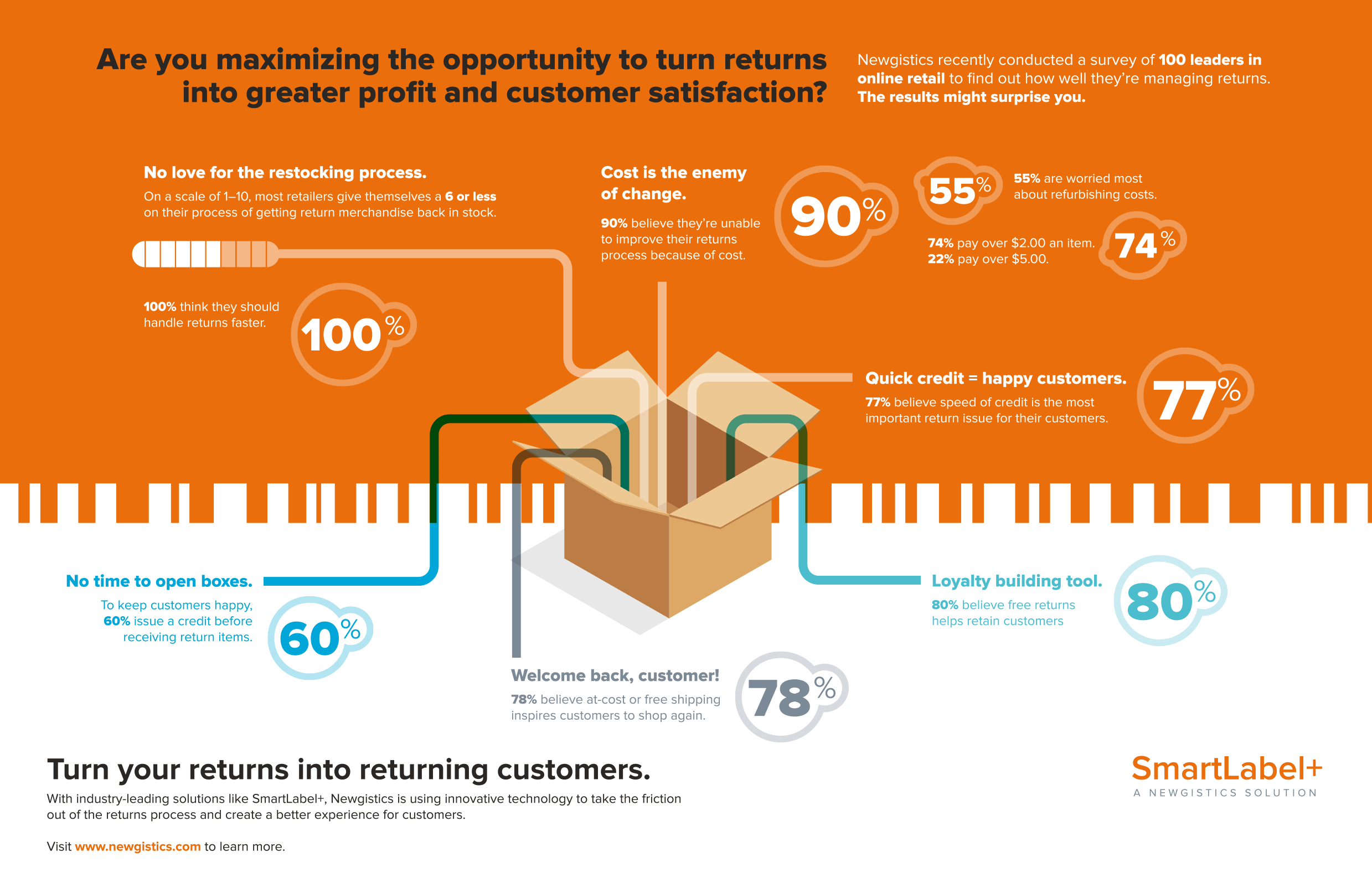 eCommerce: Orchestrated a targeted eBlast campaign alongside a two-page trade magazine spread to support Newgistics' unique value proposition: turning returns into returning customers. Engaging, on-brand infographics were created to clarify the technical aspects of the process for the eCommerce audience.